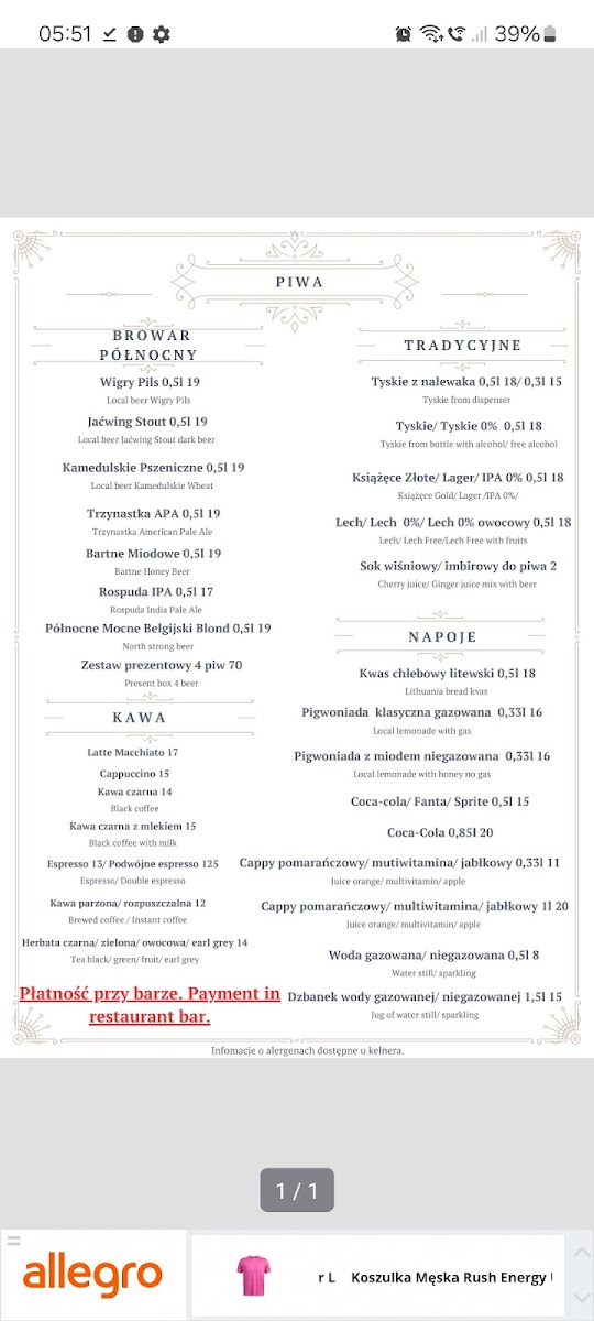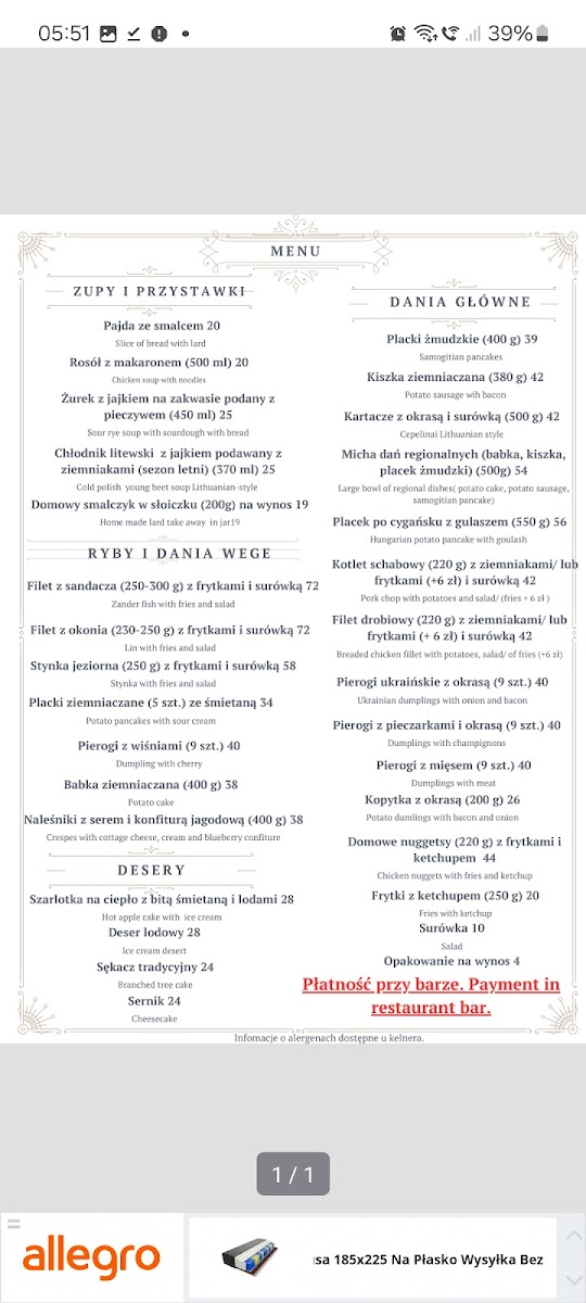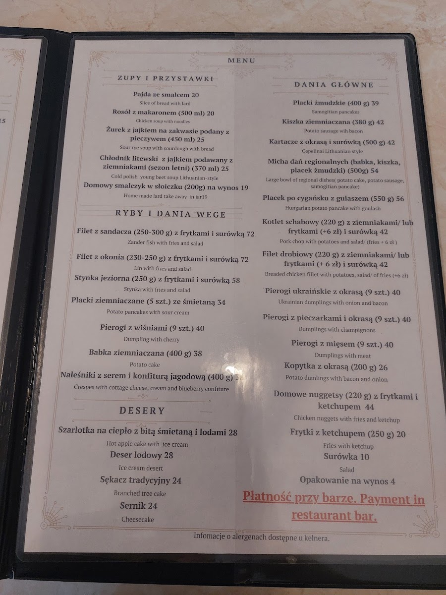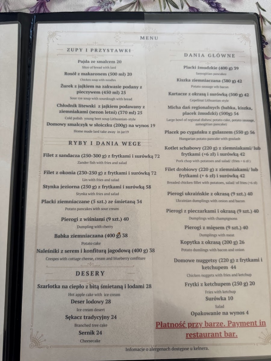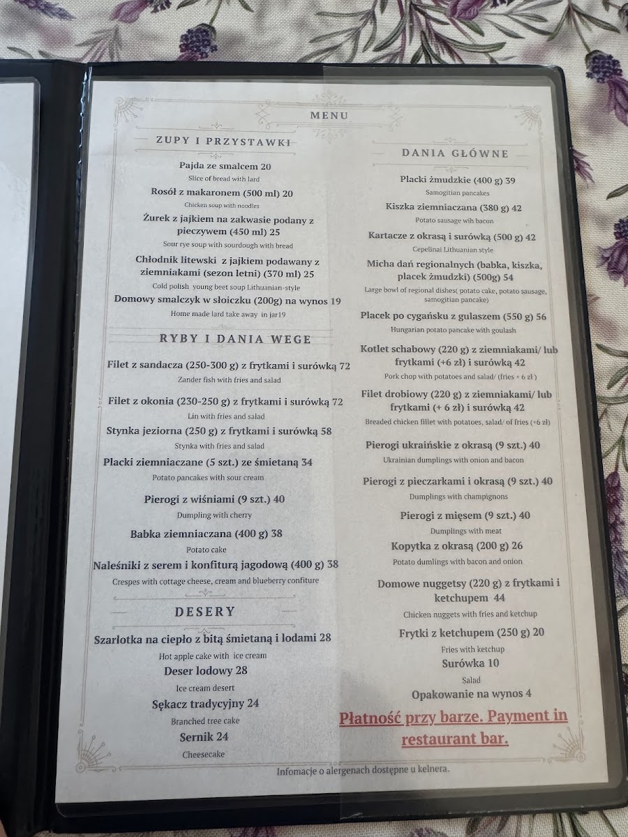 But it’s not just the food that captivates. Guests appreciate the generous portions and warm service, making every visit feel like a special occasion. The restaurant also boasts unique offerings such as local drinks made from svarainis (quince), adding to the authentic Polish experience. Whether you're stopping for coffee and dessert or enjoying a hearty meal after a day of exploring, Stanczykowka stands as a must-visit destination for food lovers.